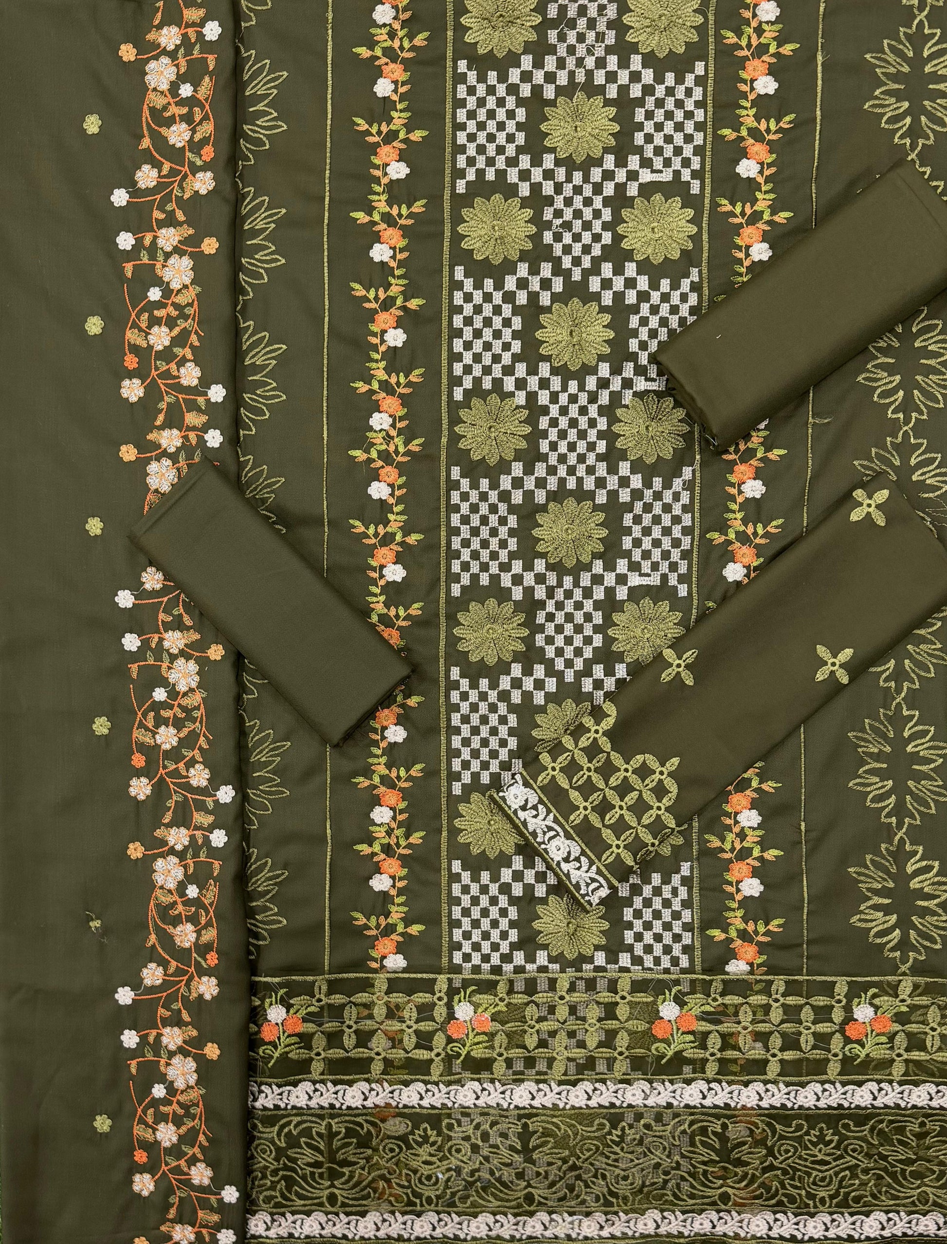 *DHANAK EMB 3pc WITH DHANAK EMB DUPPATA*
