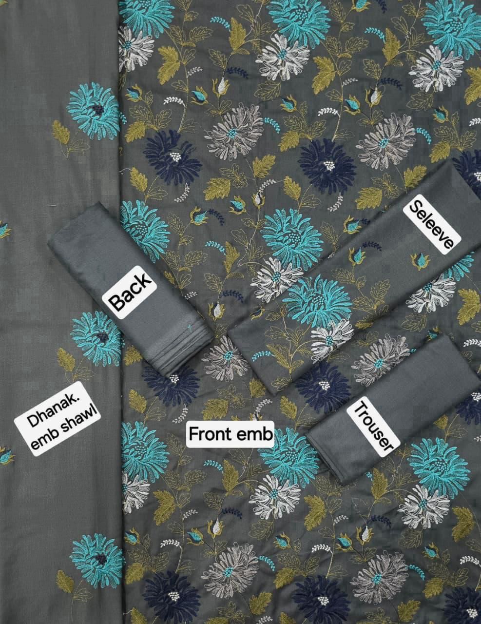 *DHANAK EMB 3pc WITH DHANAK EMB DUPPATA*